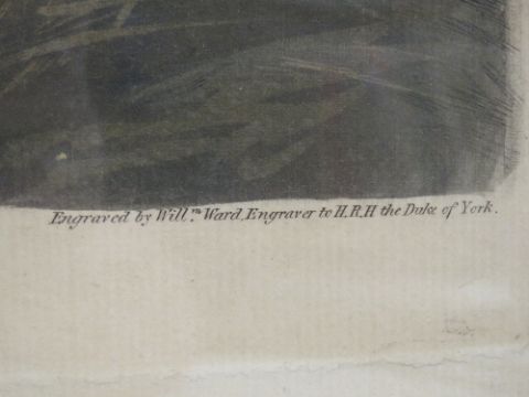 Print; The Warrener, painted by George Moreland, engraved by William Ward, within Hogarth frame, 73 x 59cm.