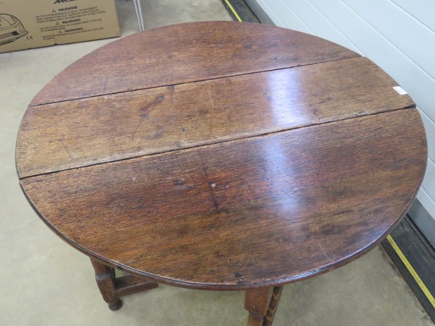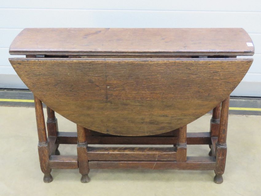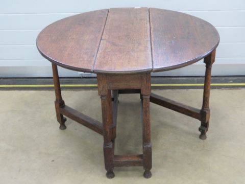 A Georgian country made gate leg drop leaf table in oak, 99 x 104cm.