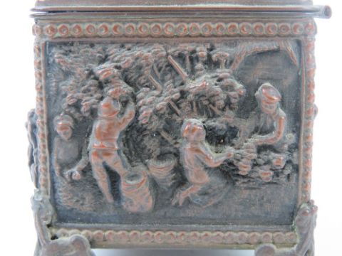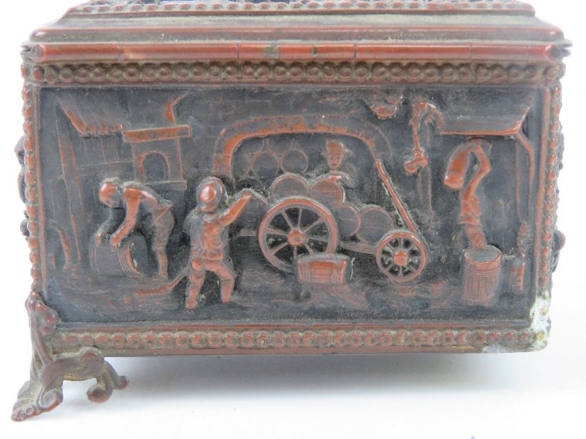 An HM silver collard cut glass salt, together with three other salts (2+1) and a lidded relief jewellery casket (one foot deficient). Five items.