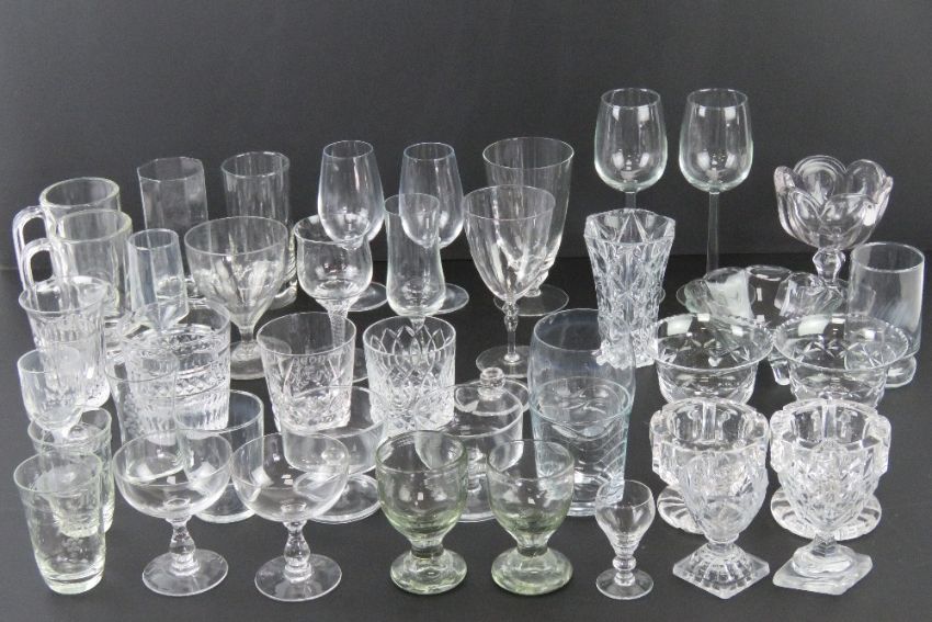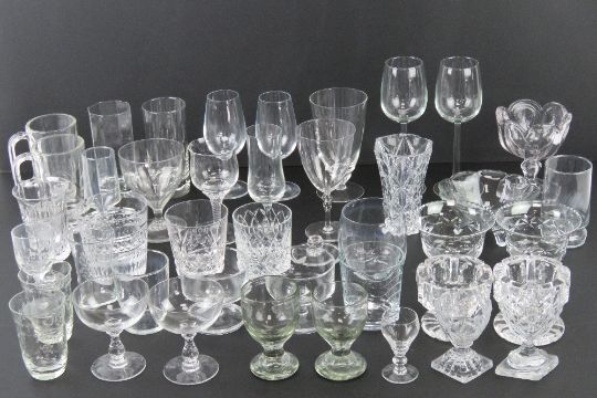 A quantity of assorted glassware including wines, tumblers, whiskey glasses, bowls, etc etc.