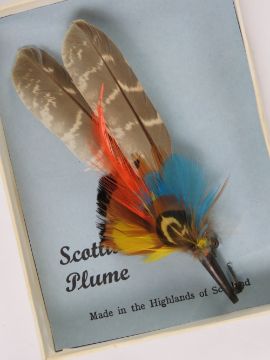 Two Scottish plume brooches one upon original card approx 11cm in length.