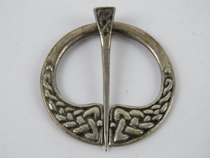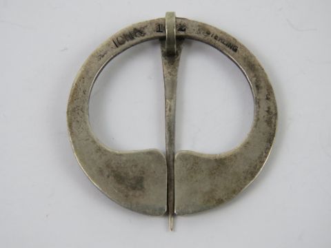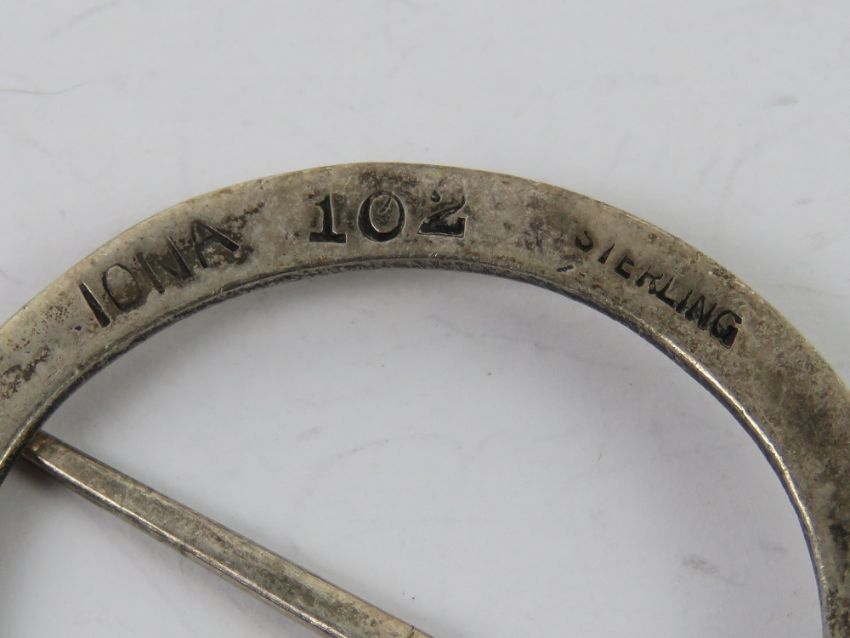 A Scottish silver kilt pin / plaid brooch, 'Iona' marked to back and numbered 102, stamped Sterling, 4cm dia.