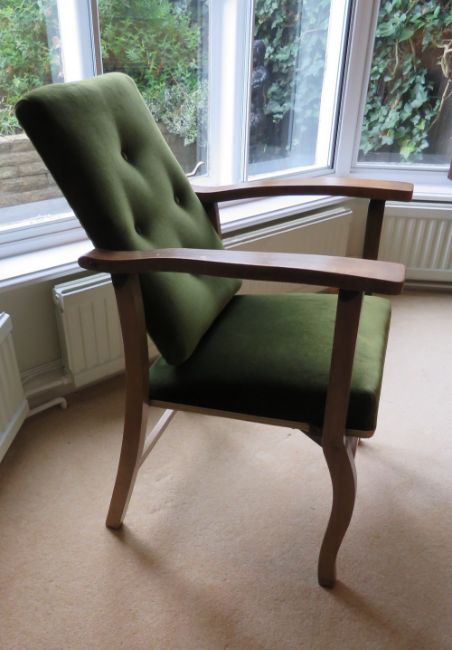 An unusual set of four partially metamorphic chairs, having swivel backs (upright/slanted) and folding arms and legs. C1960s.
