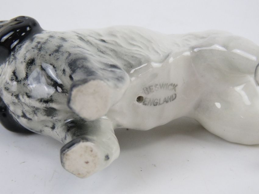 A Doulton Springer spaniel, 7cm high, together with another Springer spaniel, larger and unmarked. Two items.