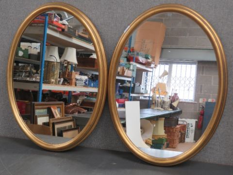 A good contemporary pair of oval wall mirrors, 77 x 55cm.