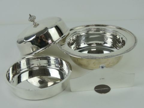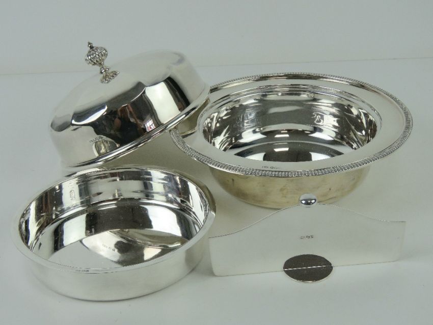 A HM silver chafing dish with liner and divider, each piece being individually hallmarked for Sheffield 1927, with makers mark Henry Wilkinson (John Street, Sheffield), 20.5cm dia, 34.25ozt / 1067g.