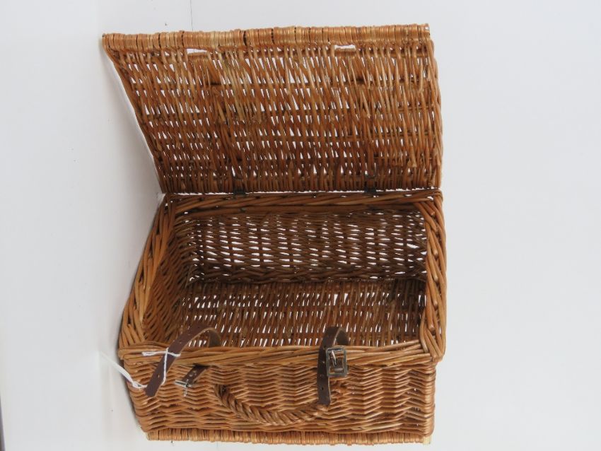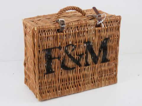A Fortnum & Masons wicker breakfast hamper with leather straps 30 x 25 x 15cm.
