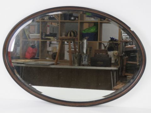 A good oval bevel edged rosewood framed over mantle mirror 80 x 56cm.