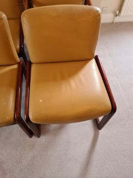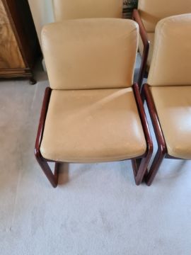 A set of five (4+1) retro studio-design mahogany framed chairs c1960s. No makers name.