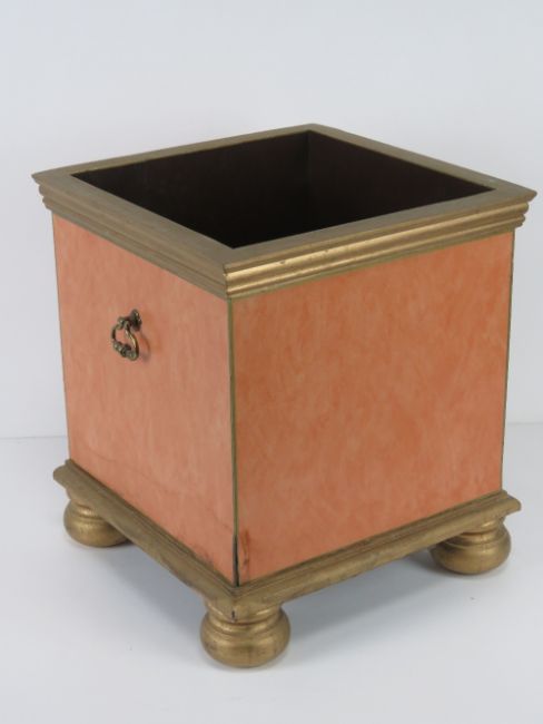 A contemporary square shaped floor standing jardiniere or planter complete with end handles and raised over squat feet. Part gilded. 33 x 33 x 38.
