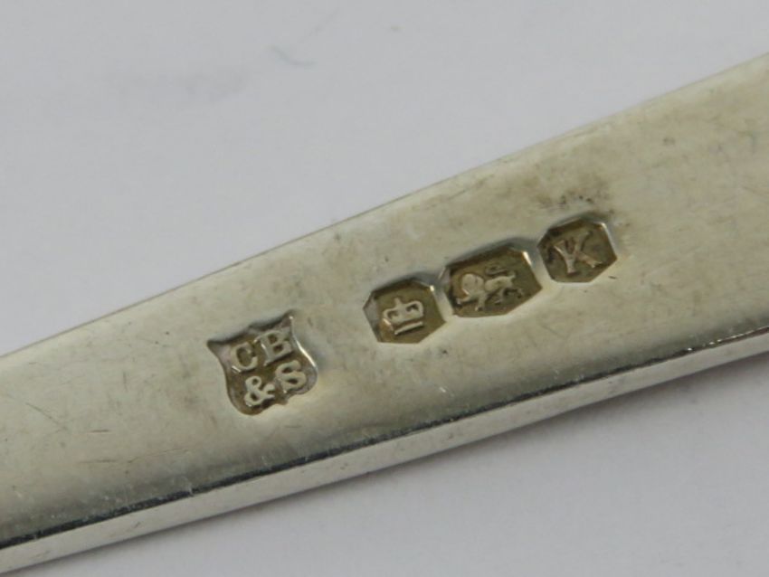 Two sets of HM silver coffee spoons, six spoons in each set, the first hallmarked Birmingham 1931, the second hallmarked Sheffield 1952. Together with a set of three teaspoons hallmarked Sheffield 1919 and a caddy spoon hallmarked Birmingham 1913. Total weight 5.38ozt/167.2g.
