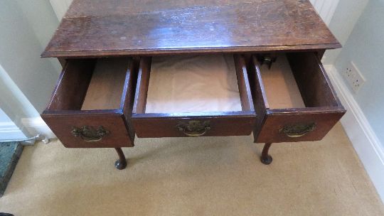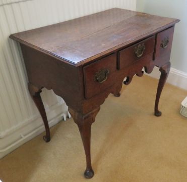 A Georgian low boy, central drawer flanked by twin box drawers, over shaped frieze and raised over Queen Anne legs, 80 x 50 x 70cm.