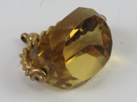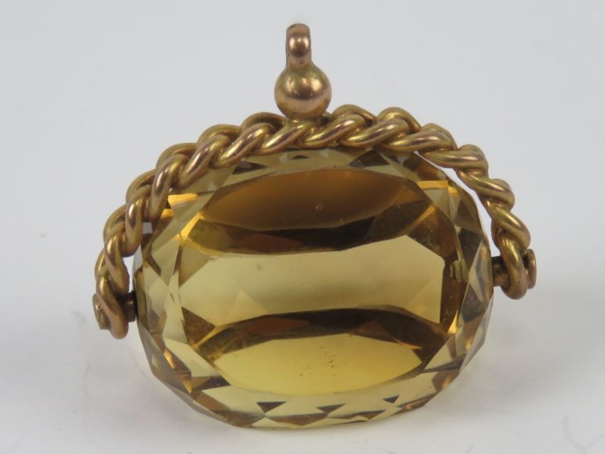 A large citrine spinning fob or pendant, warn marks (9c?), 3.4cm wide.