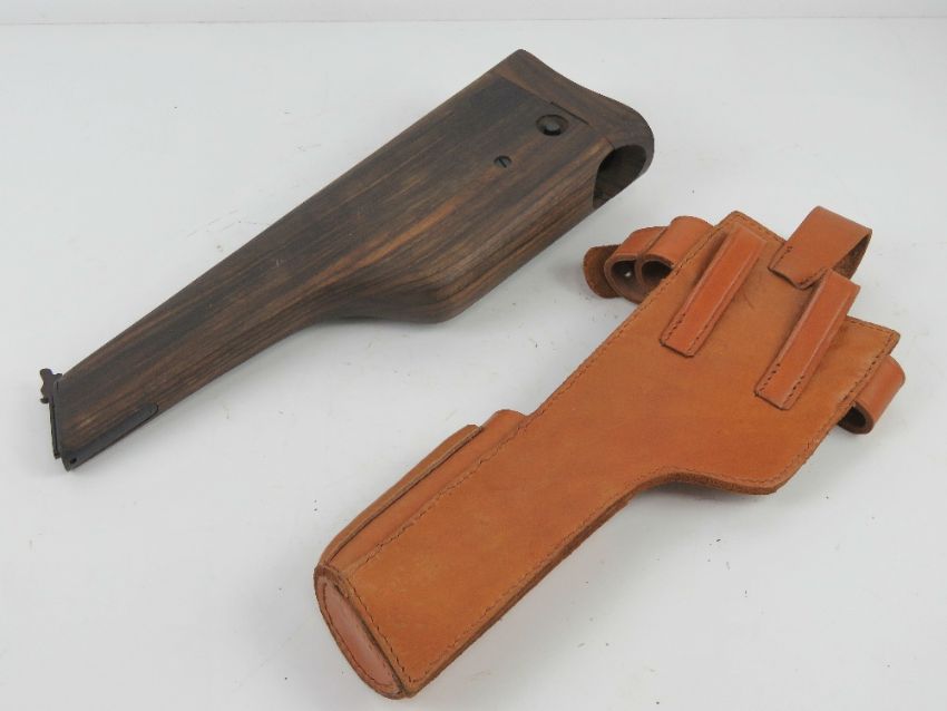 A reproduction Mauser C96 broom handle shoulder stock, with holster.