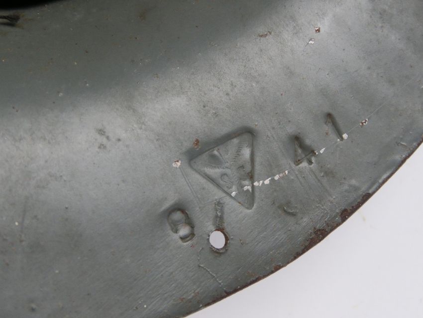 A WWII British SFP helmet with liner and chin strap, dated 1941.