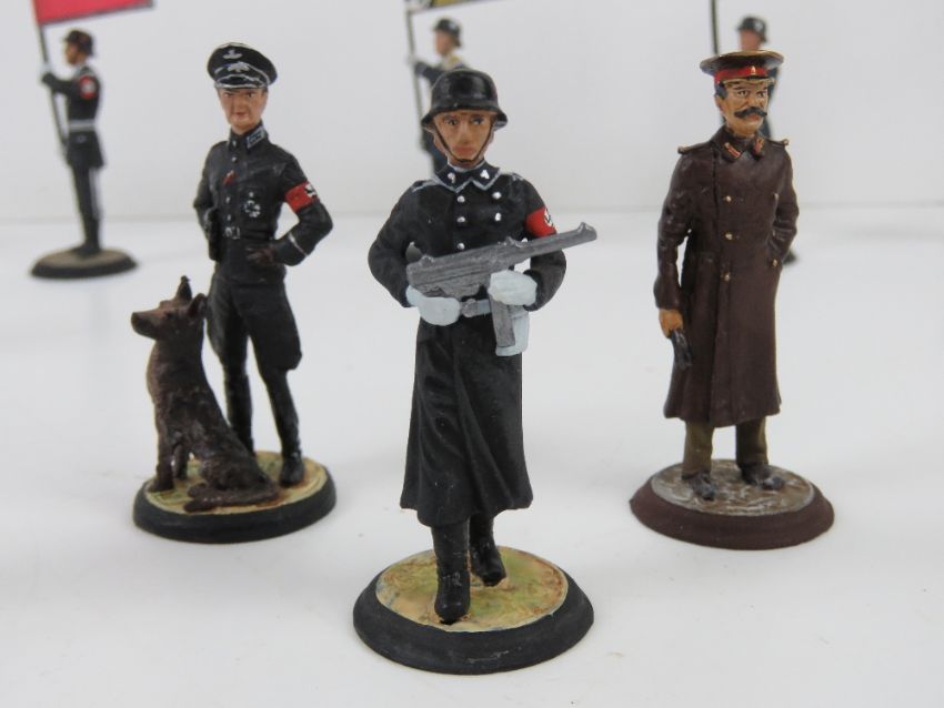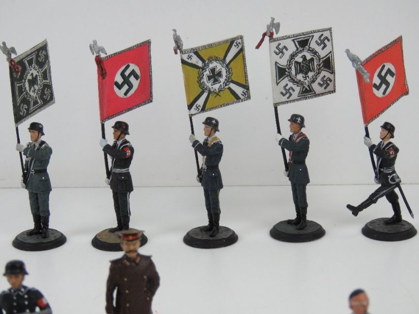 A quantity of Spanish Mundiart 'WWII German' lead painted miniature figures including Hitler, various soldiers with banners and Himler.