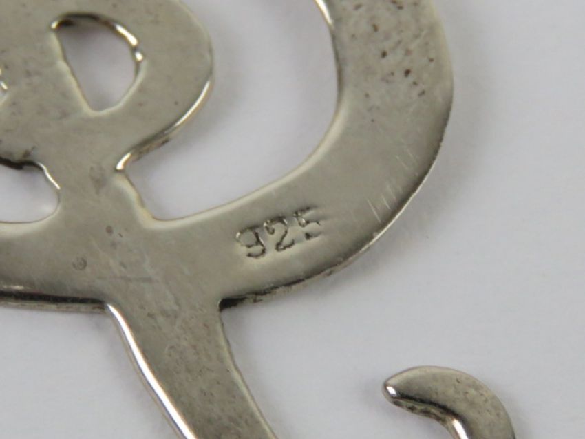 A pair of earrings in the form of treble clef, each stamped 925 and on 925 silver hangers, 5.3cm drop.