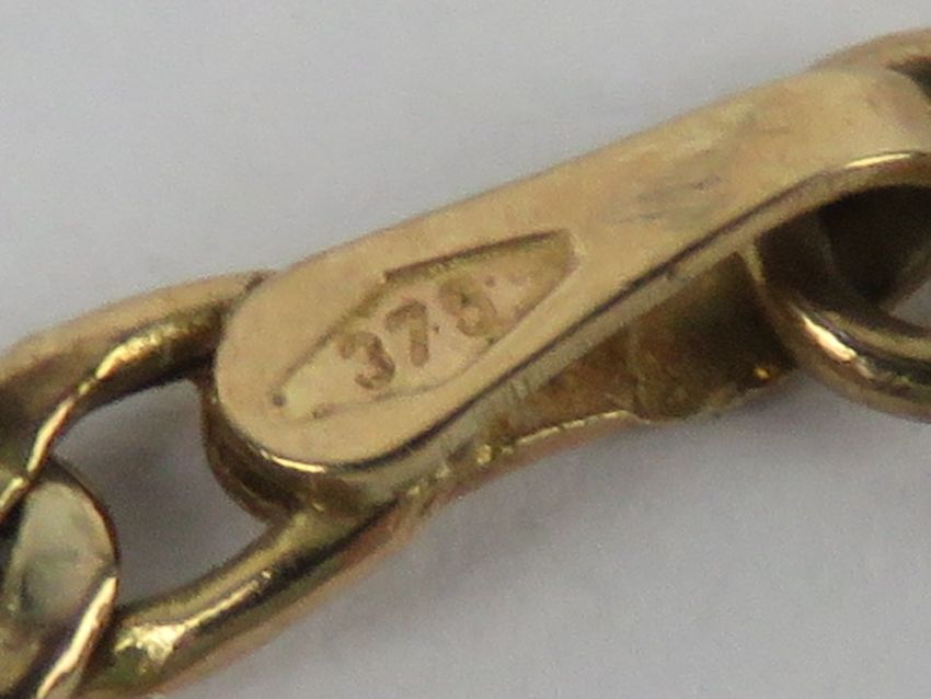 A 9ct gold curb link chain, hallmarked 375 and measuring 51.5cm in length, 1.7g.