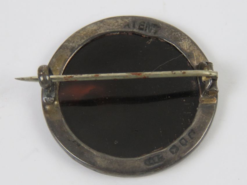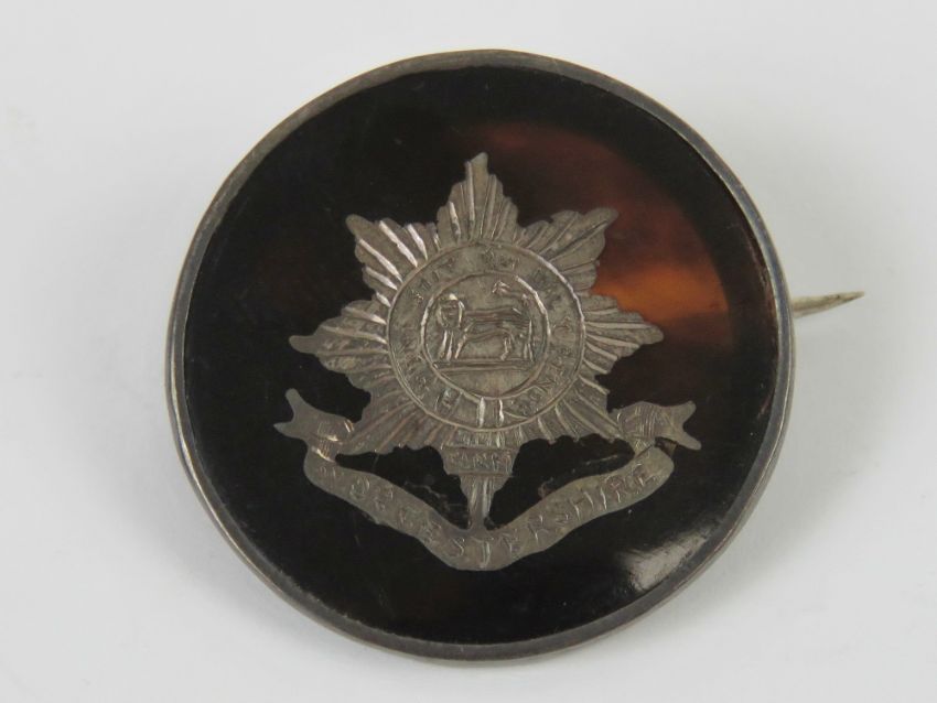 A WWI HM silver and tortoiseshell regimental sweetheart brooch having inlaid emblem for the Worcestershire Regiment, 2.8cm dia, hallmarked London 1916.