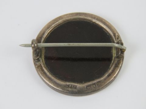A WWI HM silver and tortoiseshell regimental sweetheart brooch having inlaid emblem for the Yorkshire Regiment, 2.8cm dia, hallmarked London 1915.