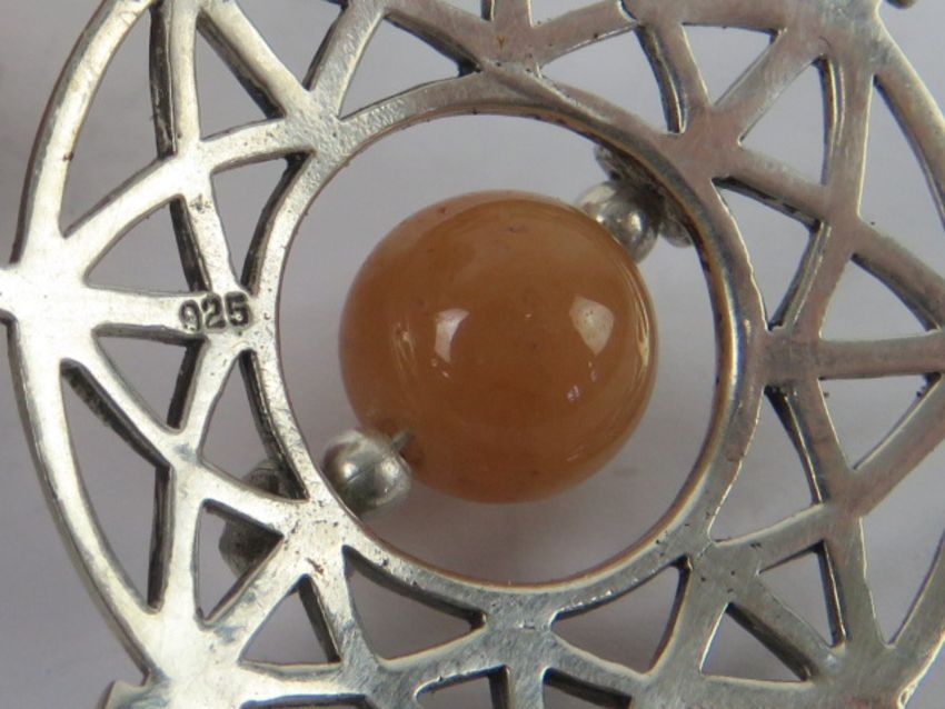 A large silver pendant in the Celtic style having disc with eight 'compass points' and central carnelian bead, stamped 925, replacement bale, total length 4.5cm.