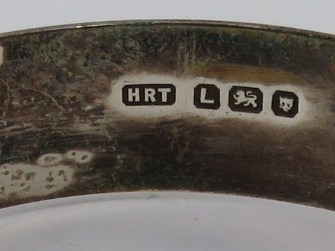 An HM silver bangle in the form of a belt, hallmarked London 1946, approx 5.6cm diameter, 1.2cm wide, 17.2g.