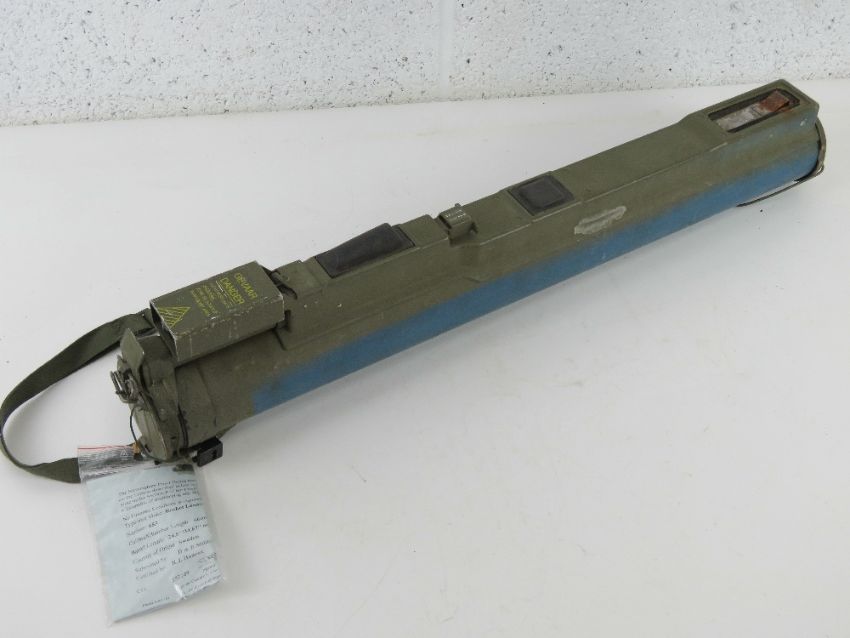 A deactivated M72 LAW rocket launcher 21mm sub munition trainer, opens and closes, with firing mechanism. With UK cert.