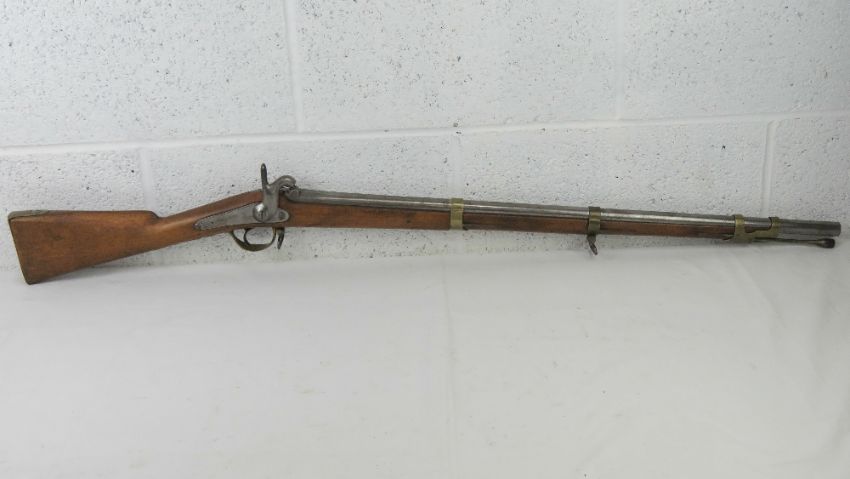 An antique Belgian M1851 percussion .71 calibre musket. No licence required.