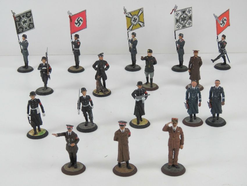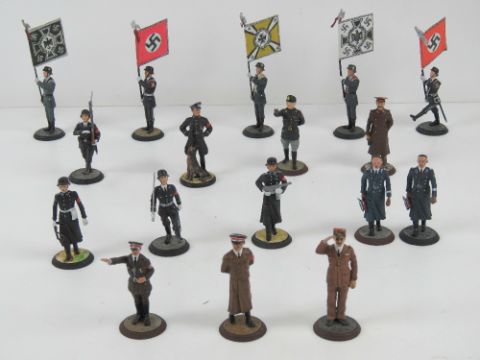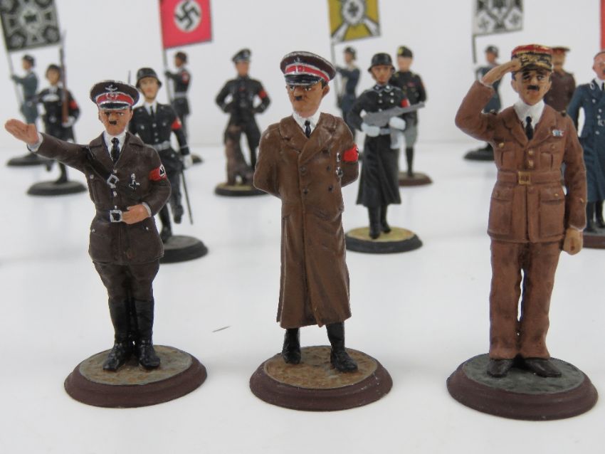 A quantity of Spanish Mundiart 'WWII German' lead painted miniature figures including Hitler, various soldiers with banners and Himler.