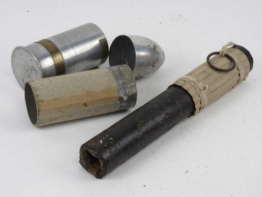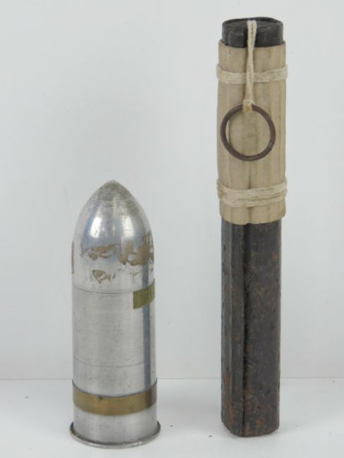 An inert WWI Russian flare, together with a WWI trench art shell case, dated 1914-15.