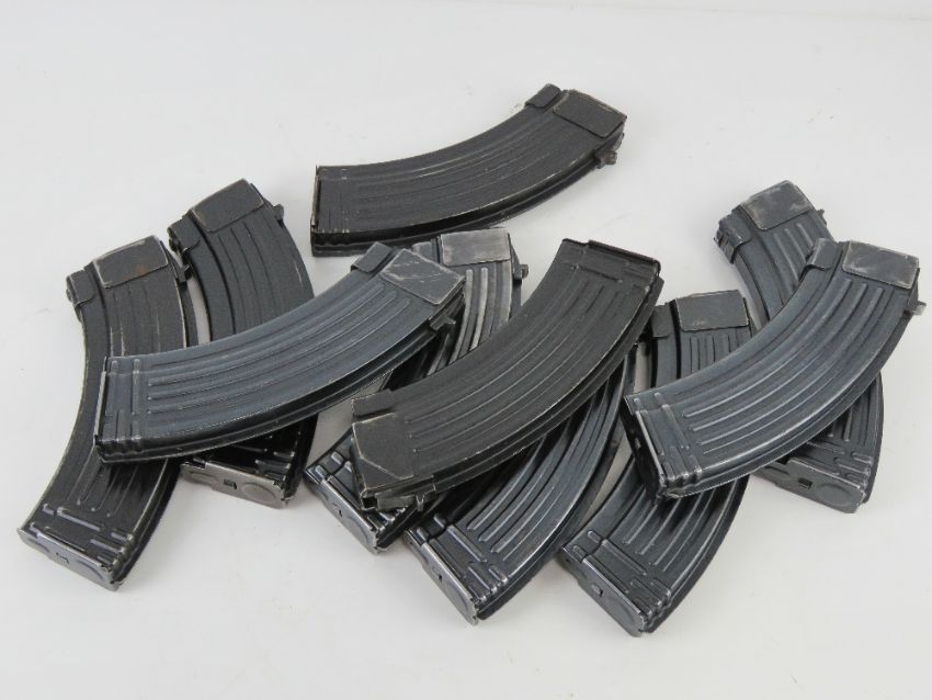 A quantity AK 7.62 magazines. Ten items.