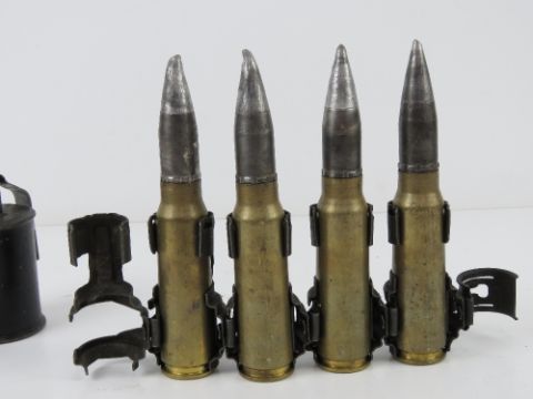 An inert RG42 grenade together with four 20mm cannon rounds in link.