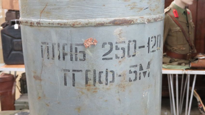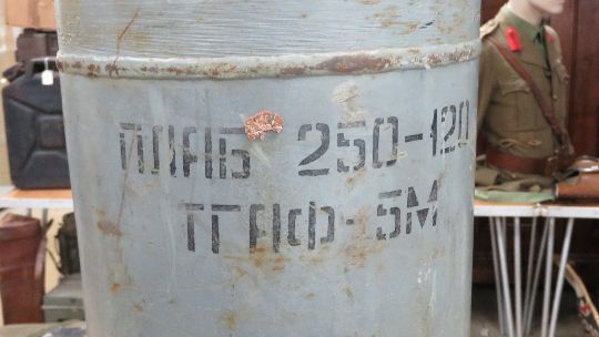 An inert Russian 250-120 Bomb, measuring 150cm in length.