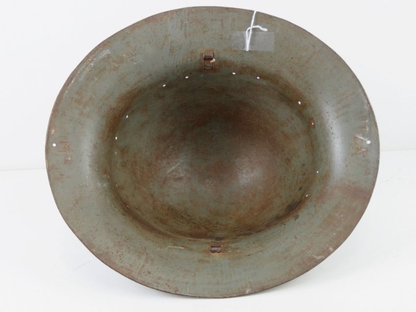 A WWII British Zucherman helmet, no liner, dated 1941. Together with a mess tin.