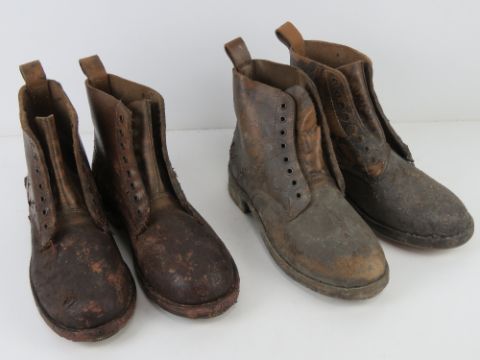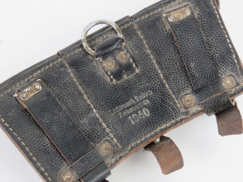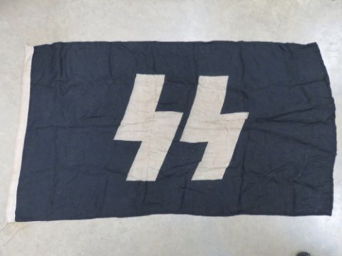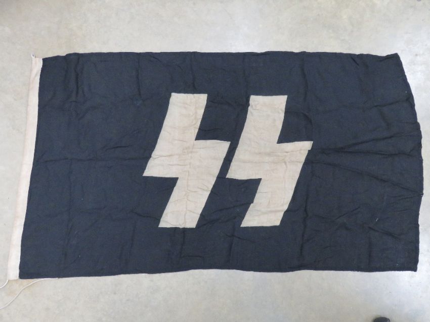 A quantity of assorted reproduction militaria; five leather Y-Straps, MP40, MP44 and K98 ammo pouches, SS Flag, three pairs boots (2 short & 1 long), two pairs pea dot SS trousers, pair of boot putties, two combat belts, Heeres belt buckle, two blank MP44 magazine cartridges, assorted insignia etc.