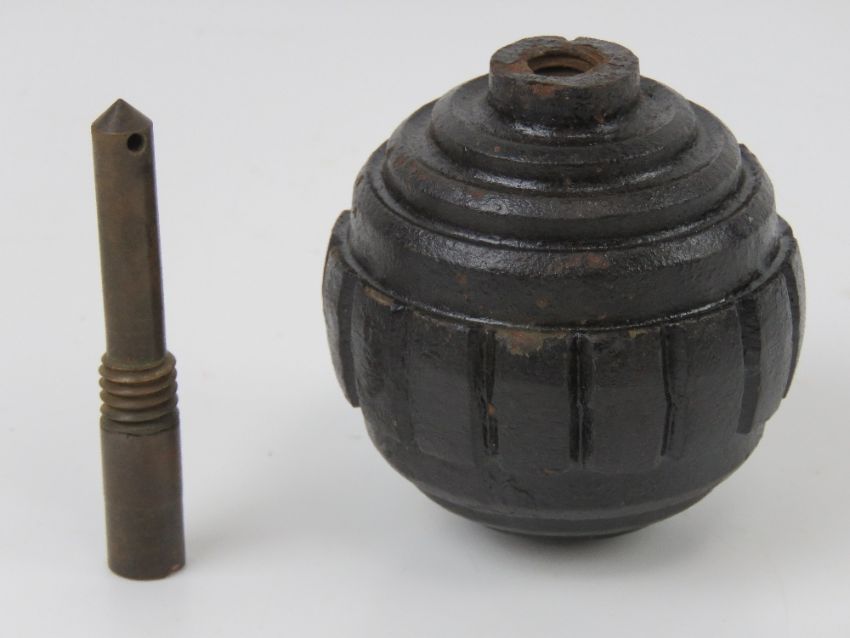 An inert WWI German Kugel grenade with fuse.