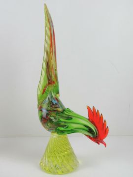 A pair of Murano-style Art glass cockerils, one in green, one in orange, each standing 47cm high.