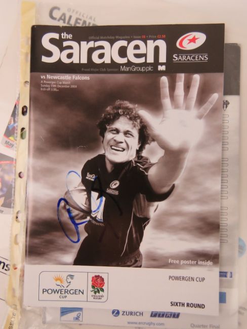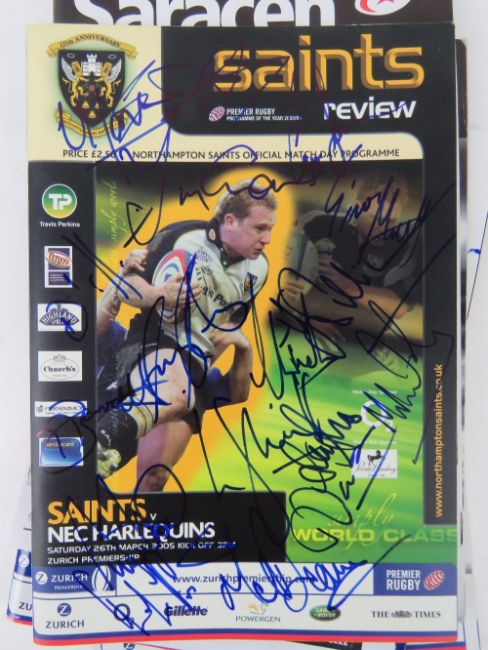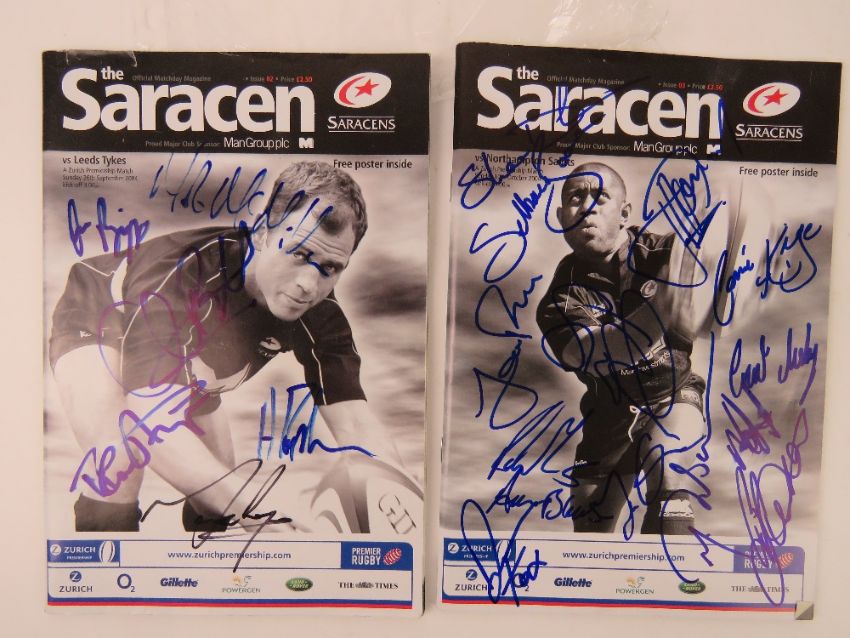 A large quantity of assorted Rugby programmes, many signed, inc Saracens, Tigers, Wasps, etc etc.