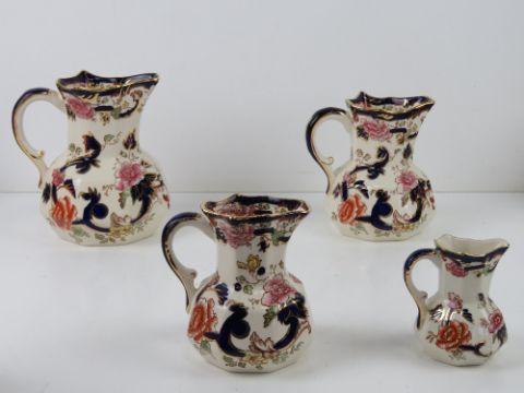 A set of four Masons Ironstone Mandalay pattern graduated jugs, smallest 8.5cm high, largest 17cm high.