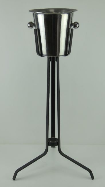 A champagne ice bucket on black painted metal stand, 77.5cm high.