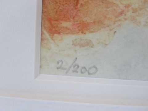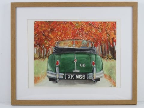 Print; study of the rear of a vintage Jaguar XK Drophead in autumnal setting, No2 of 200 by Jenella Horne, 28 x 35cm. Framed and mounted. Prov: From the collection of a prominent member of the Guild of Motoring Writers.