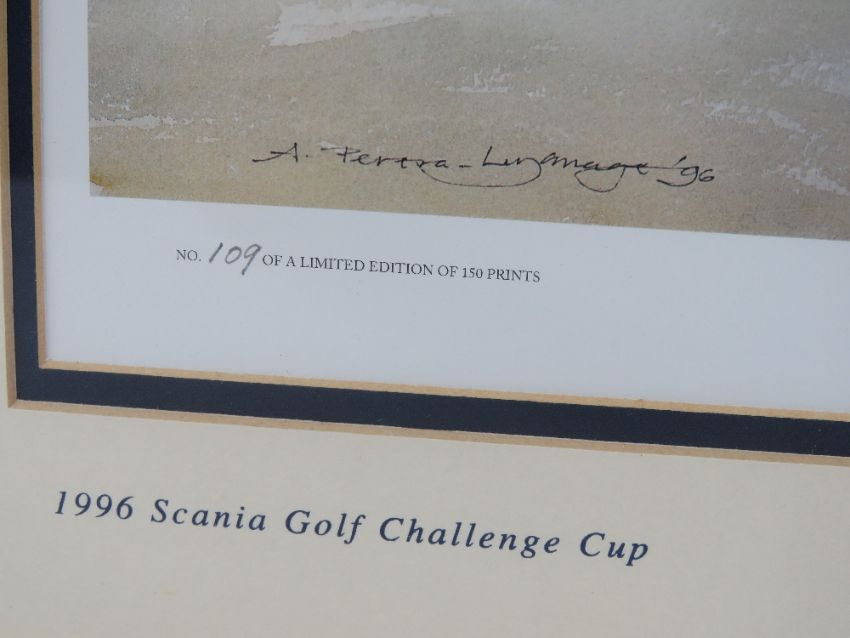 A limited edition signed print of The Ochiel Hills Perthshire Scotland, 1996 Skania Gold Challenge Cup, 109/150, signed by the artist lower right, 39 x 24.5cm framed and mounted.
