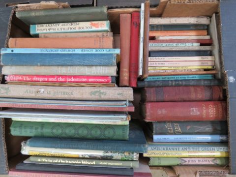 Three boxes containing a large quantity of assorted antiquarian late 19th - 20th century children's books.