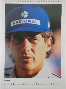 A quantity of Ayrton Senna calendars, some unopened, 1998 x 2, 1999, David Coulthard 1999, Grand Prix calendar 2001, Ayrton Senna 2001, together with a Grand Prix calendar.