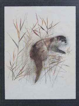 A pair of prints by Mad Stage being a otter and a squirrel, each 23 x 30cm, framed and mounted.
