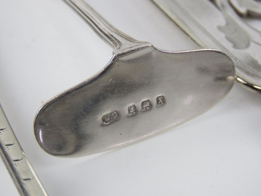 A delightful pair of Mappin and Webb silver plated bon bon dishes, together with other silver plated items including Egyptian Revival serving spoons, fish servers, asparagus tongs, napkin rings, etc.