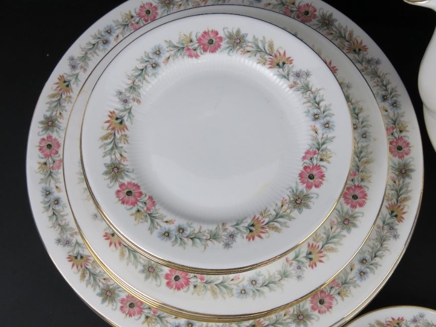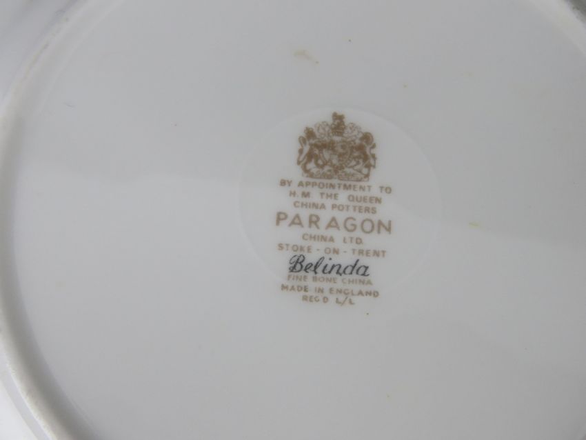 A quantity of Paragon tea and dinnerware in Belinda pattern including; soup bowls and saucers, sauce boat and saucer, fruit bowl, dinner plate, teapot, cups and saucers etc.