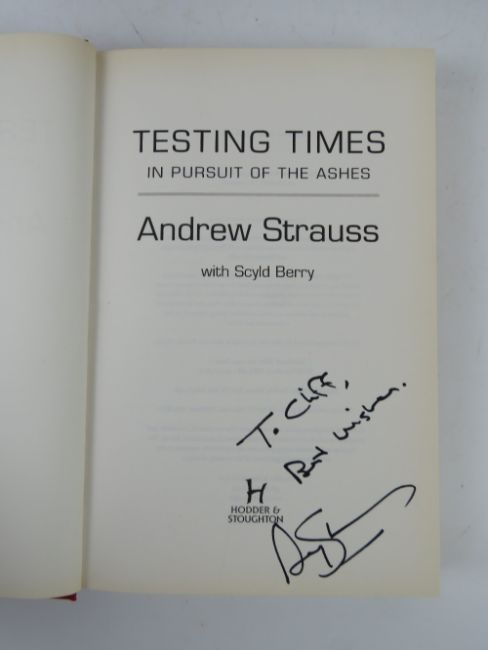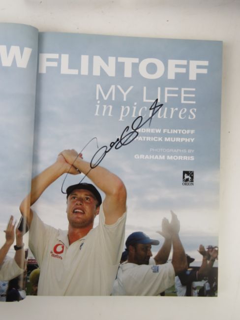 A quantity of autographed cricket autobiographies/biographies including; Ian Botham My Illustrated Life, Andrew Strauss Coming into Play, Andrew Flintoff Being Freddie, etc. Eight books.