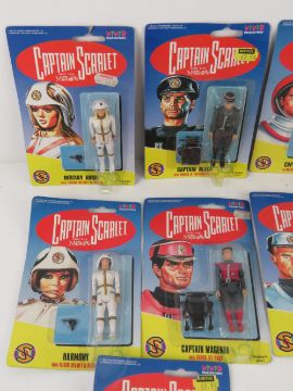 A quantity of ten Captain Scarlet figurines in original packaging, c1990s.