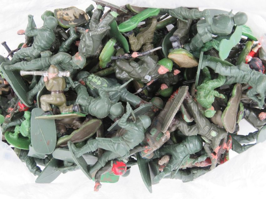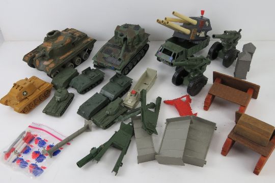 A quantity of assorted army figurines and vehicles including various tanks, Britains British Army figurines, etc.